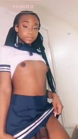 Ebony Slut Kindakaede Masturbating BBC in Sexy Mini Skirt